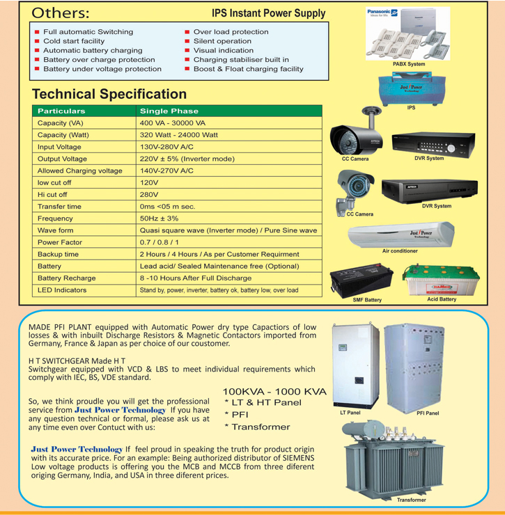 Concern Person :Managing DirectorCell :01712-348948,House No# 03, Avenue# 01,Block #B Section#10Mirpur, Dhaka-1216. E-mail : justpowerbd@gmail.cominfo@justpowerbd.com